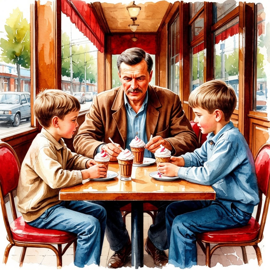 Папа купил нам по порции: мне – мое любимое крем-брюле, Сашке – шоколадное. Мы уселись за столик у окна. Я подцепил шарик ложкой… О боже! Он был именно таким: холодный, с хрустящей корочкой инея, а внутри – кремовая нежность, тающая на языке. Я закрыл глаза от блаженства.