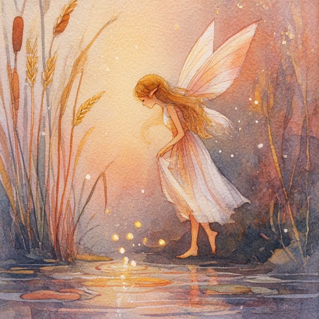 Сердце феи трепетало. Оно чувствовало, как из мира в эти мгновения исчезало лето. Ветви деревьев тяжко склонялись к земле, цветы странно колыхали потемневшие лепестки, и даже солнце, прощаясь, задержалось на горизонте чуть дольше обычного. Фея села у пруда, где вода отражала последние отблески дня. Искорки слёз медленно покатились по её щекам. С тихим всплеском они падали на смутную гладь воды, превращаясь в крошечные жемчужины, светящиеся изнутри мягким, тёплым светом.