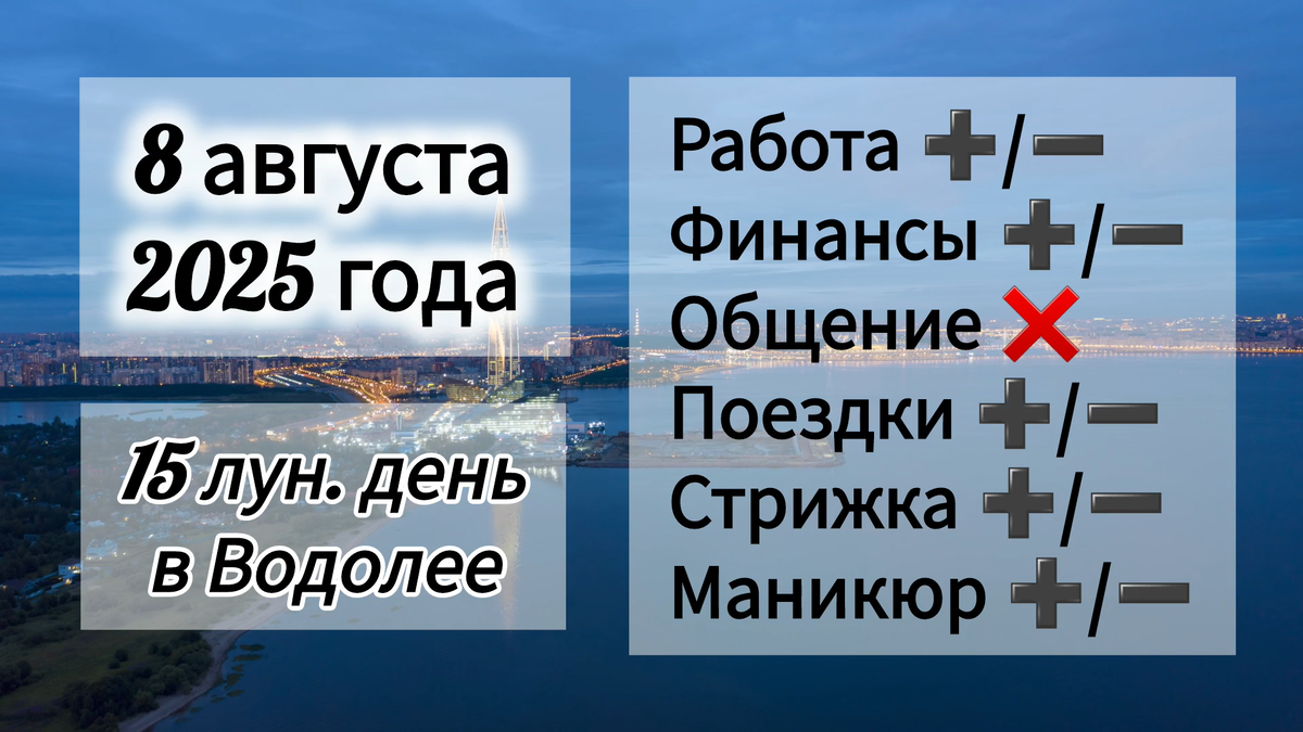 Наступает 15 лунный день. Это пик активности для любого человека. Вместе с тем становится трудно контролировать эмоции. В этот день желательно заниматься текущими делами, завершать уже начатые проекты, новых дел начинать не стоит. Спланируйте день заранее, иначе может быть сделано гораздо меньше, чем вы задумали. Удачное время для работ по дому. Крупные покупки и финансовые сделки рискуют оказаться неудачными, перенесите их на другой день. Окружающие могут быть взвинчены и неуравновешены. Существует высокий риск ссор и размолвок. Поэтому желательно как можно меньше контактировать. Это не лучшая пора для новых знакомств. Нейтральное время для путешествий, вероятны неприятные ситуации в дороге. Оптимально в этот день погулять на природе в одиночестве. Полезно устроить разгрузку в питании.