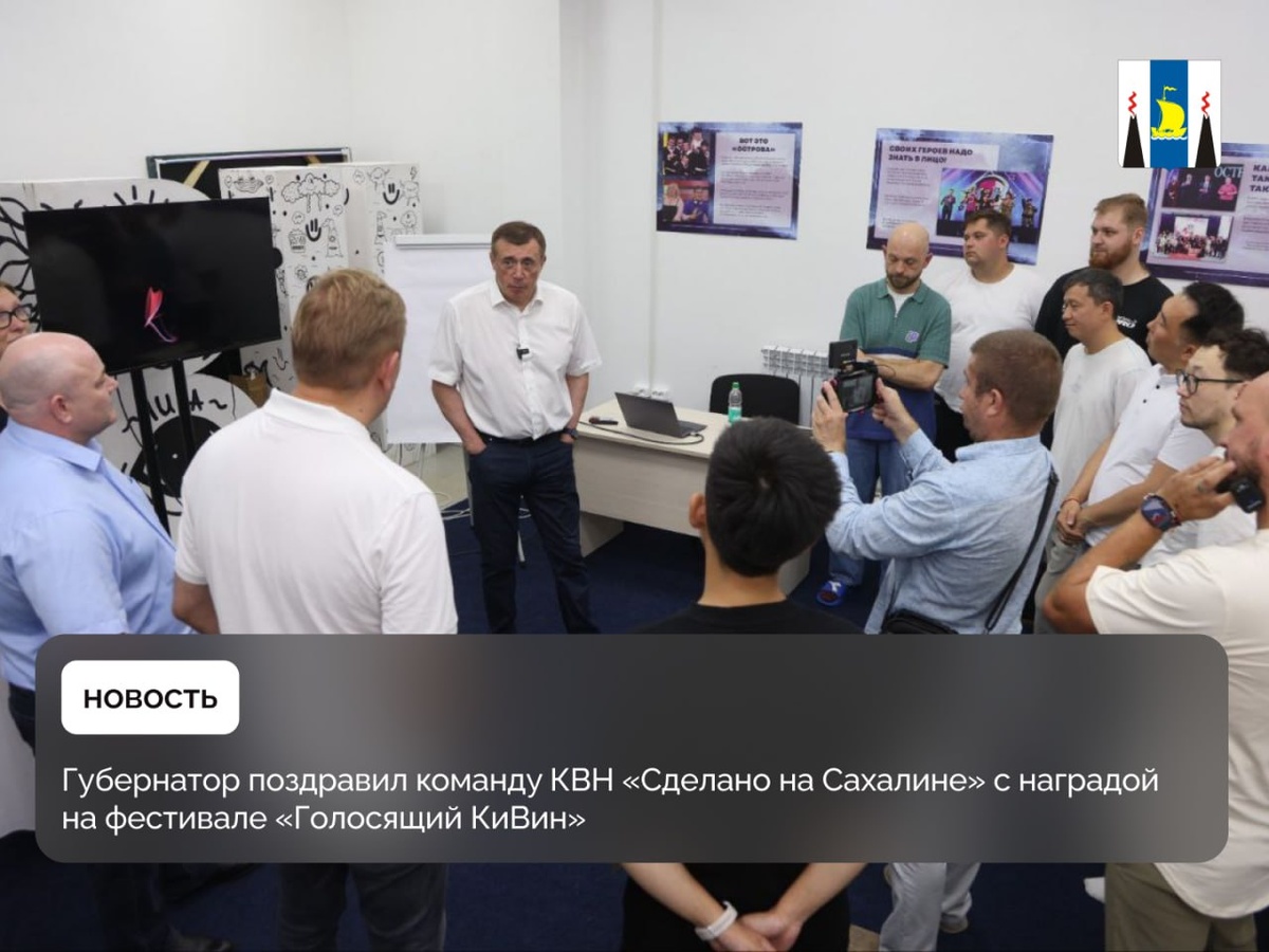 🗾 Валерий Лимаренко поздравил команду КВН «Сделано на Сахалине» с победой на фестивале «Голосящий КиВин» 🔥 Предварительный отбор, дающий право выступить на гала-концерте фестиваля, прошли 1️⃣8️⃣ команд. Сахалинские юмористы принимали участие в «Голосящем КиВине» впервые. Губернатор отметил, что команда «Сделано на Сахалине» достойно представила регион на всероссийском уровне. 📱 Подробности