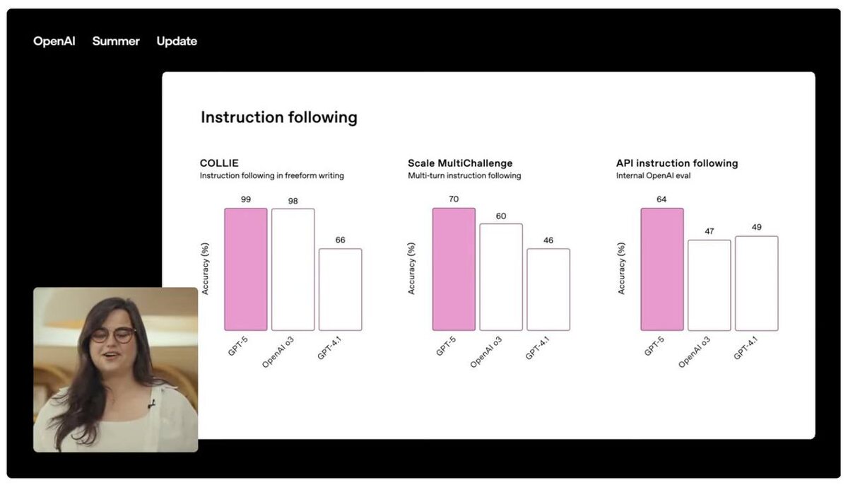 По сравнению с O-серией (o3): GPT-5 — лучший вариант для кода, рассуждений и агентных сценариев без ручного выбора «thinking/не thinking»: в ChatGPT это регулируется автоматически, в API — через профили в рамках одной модели.