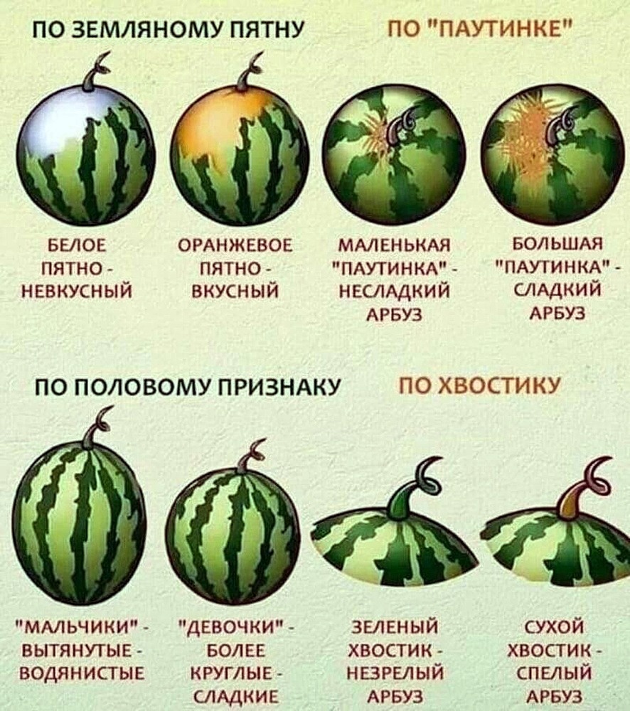 Уже несколько раз в этом сезоне покупала арбузы, и каждый раз неудачно: то несладкий, то недозрелый. На что ориентироваться, выбирая арбуз? Покупать разрезанный не хочется. Ольга КУЗНЕЦОВА. Уфа. Отвечают специалисты Управления Роспотребнадзора по Республике Башкортостан — Вы правы, что не покупаете резаные арбузы: вырезание кусочков на пробу или разрезание арбузов на части строго запрещено, так как в месте разреза быстро размножаются вредные микроорганизмы. Поэтому арбуз берем только целый, с неповрежденной, твердой и блестящей коркой. Один из главных признаков спелого арбуза — желтое или оранжевое пятно на боку, оно говорит о его естественном созревании. Зрелый арбуз издает характерный звенящий звук при постукивании, а при сжатии вдоль продольной оси слабо похрустывает. Усик и плодоножка должны быть сухими. Принято также считать, что арбузы-«девочки» содержат больше сахара: от «мальчиков» они отличаются более округлой формой. Обращайте внимание и на особую «паутинку» на кожуре: чем он
