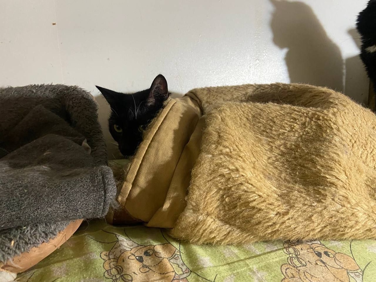 Сладких снов вам желает ЛАКИ, дорогие друзья!💤Котик улегся спать :укутался в одеяло как в спальный мешок.
