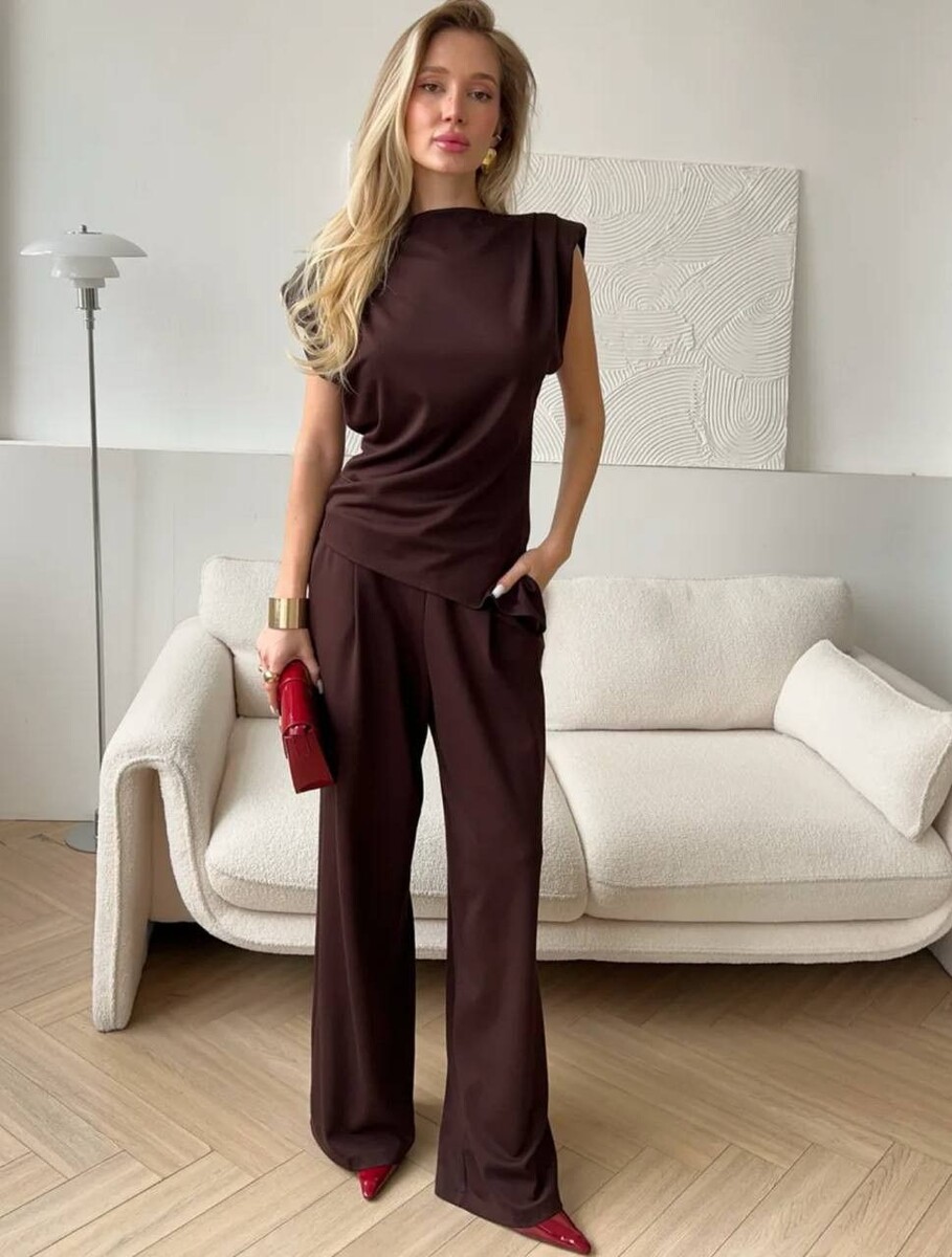 - Верх или низ? Если базовые брюки или юбка у вас нейтральные (допустим, тот же теплый песок или глубокий сливовый), то смело добавляйте яркий верх: блузку сочного персикового цвета или топ в терракоту. И наоборот: нейтральный верх (бежевая блузка, кремовый джемпер) прекрасно оттенит юбку цвета марсалы или брюки лавандового оттенка.