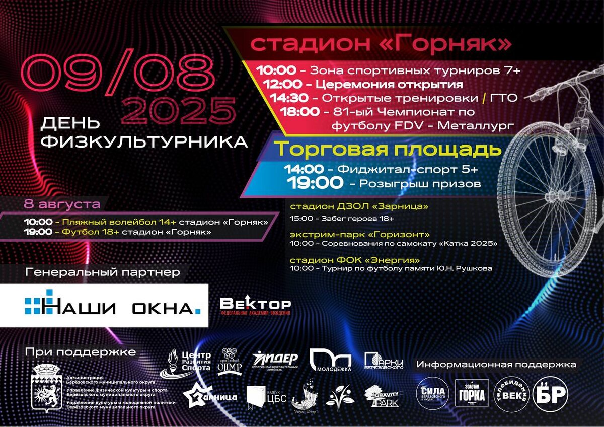 Публикуем афиши Дня физкультурника в Берёзовском.