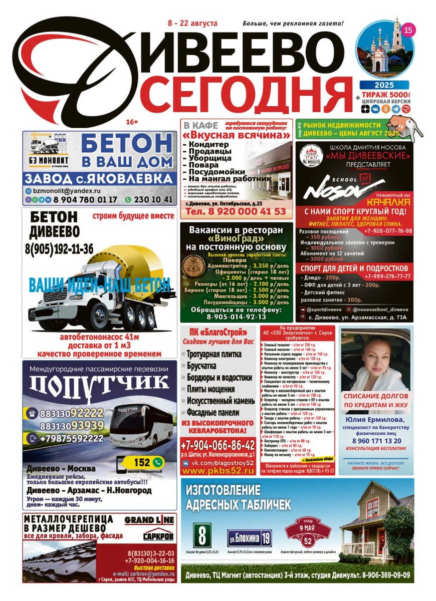 Дивеево Сегодня №15 (8-22 августа 2025г