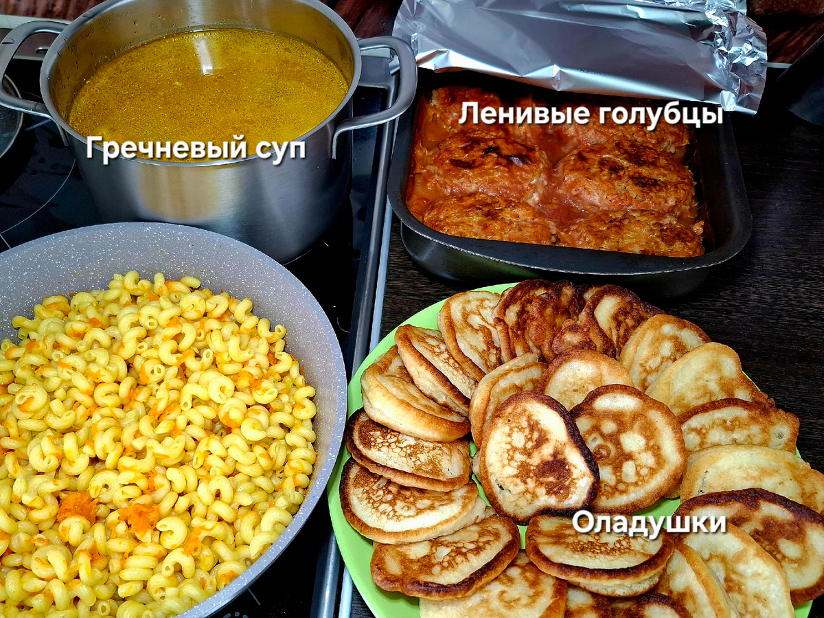 Открываю рубрику - наготовила. Любите ли вы готовить или же приходится? В любом случае- это вечный вопрос- что готовить. В этой статье мои идеи меню на день. На первое- суп гречневый, на второе- блюдо очень любимое моей семьёй-ленивые голубцы с макаронами, к чаю- пышные и вкусные оладьи. За кадром салат витаминный: огурец, помидор, зелень, заправленный майонезом. Все ссылки на рецепты прикреплены. Готовьте с удовольствием и подписывайтесь на мой кулинарный блог "Люблю кухню. Рецепты "