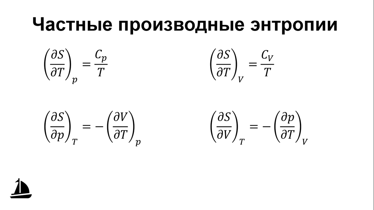 Запомним частные производные энтропии: формулы, связывающие ее с другими термодинамическими характеристиками. Рассмотрим различные варианты и найдем решение интеграла в разных случаях. 1. Если теплоемкость при постоянном давлении является в рассматриваемом диапазоне температур почти постоянной: 2. Если теплоёмкость при постоянном давлении в рассматриваемом диапазоне температур нельзя считать постоянной и нам известна функция теплоемкости при постоянном давлении. При постоянном объеме формулы аналогичны. Если нижний предел интегрирования равен абсолютному нулю, то можно провести некоторые преобразования: Энтропия при нуле градусов является постоянной интегрирования. Однако постоянство этого числа относится к равновесным системам, а, так как при низких температурах скорости процессов замедляются, то равновесие наступает очень-очень медленно. В идеальном кристалле, энтропия при 0 будет равна 0. Для остальных кристаллов также можно рассчитать энтропию при 0 К, используя формулу Больцмана.