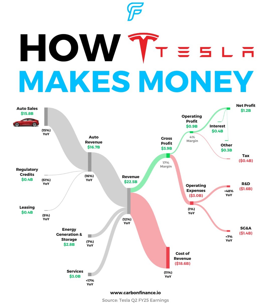 Tesla's had some ups and downs lately. 📉 Total revenue is down by 12%, operating profit plummeted by 42%, and free cash flow took a hit, dropping 89%. Ouch! 💸 #Tesla #BusinessBuzz