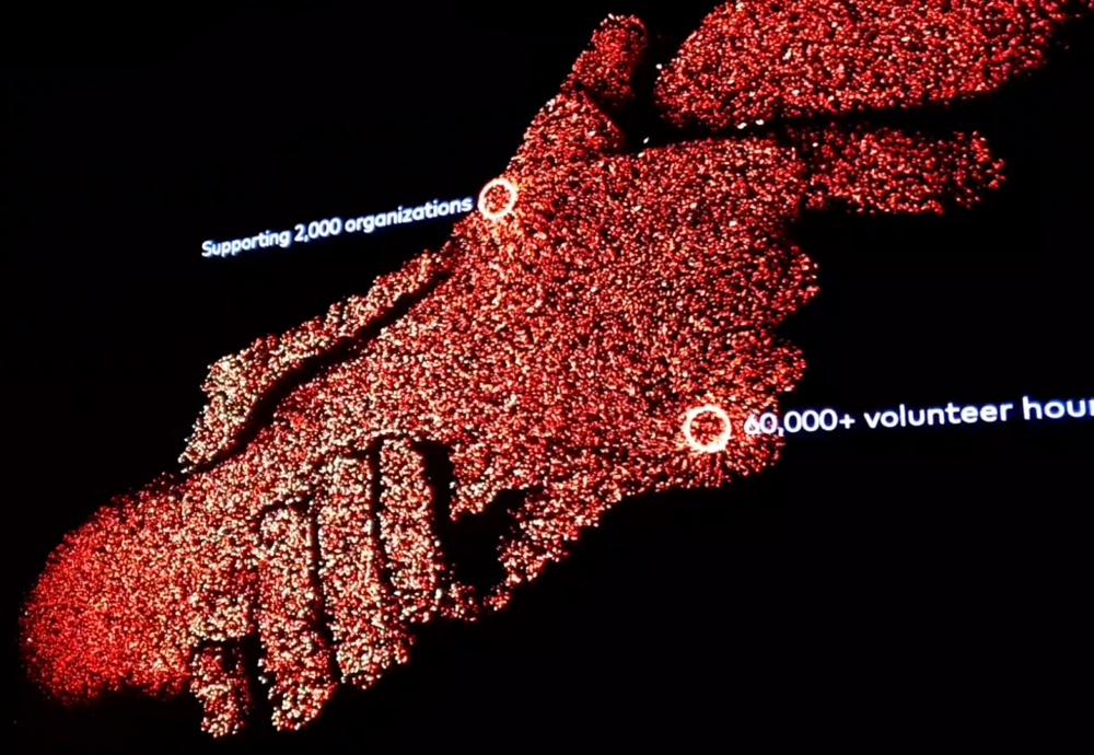 Проект Data Heart превратил вестибюль нью-йоркской компании, предоставляющей технологические услуги, в постоянно действующий интерактивный арт-объект. Объединяя данные компании в режиме реального времени, пассивное отслеживание движений посетителей и динамическую визуализацию частиц, этот проект показал, как новые технологии способны менять восприятие бренда в коммерческих условиях. Но ключевым элементом стал интерактивный звук: аудио сопровождение реагировало на присутствие людей, создавая уникальную звуковую атмосферу, которая усиливала визуальные эффекты. Каждый шаг или жест посетителя мог изменять тональность или ритм мелодии, превращая лобби в живой "организм", который откликался на каждое движение. Это создавало ощущение диалога с пространством, усиливая эмоциональную связь с брендом.