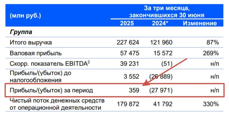 Новость: "Ozon объявляет финансовые результаты за второй квартал 2025 года и повышает годовой прогноз". 📊Результаты за 2кв 2025 года: ✅Выручка выросла на 87% до 227,6 млрд руб. ✅Скор. EBITDA — 39,2 млрд руб. (был убыток 0,1 млрд руб.) ✅Прибыль — 359 млн руб. (был убыток 28 млрд руб.) Ядро бизнеса E-Commerce (маркетплейс, реклама и пр.) хорошо растёт (оборот GMV вырос на 51%, а выручка на 73%), но всё ещё показывает убыток до налогообложения (9,5 млрд руб.). Так за счёт чего Озон вышел в прибыль?👇 ☝️Сокращение операционных расходов (их доля в GMV снизилась благодаря контролю издержек) и прибыль ФинТеха. ФинТех (Ozon Банк): ✅Выручка выросла в 2,6 раза до 46,2 млрд руб. ✅Скор. EBITDA выросла в 2,5 раза до 14,7 млрд руб. ✅Прибыль до налогообложения выросла в 3 раза до 13 млрд руб. ‼️Не стоит забывать про риски: отрицательный акционерный капитал (фактически, компания финансируется кредиторами), рост стоимости риска и резервов в Озон Банке, зависимость операционного денежного потока от ср