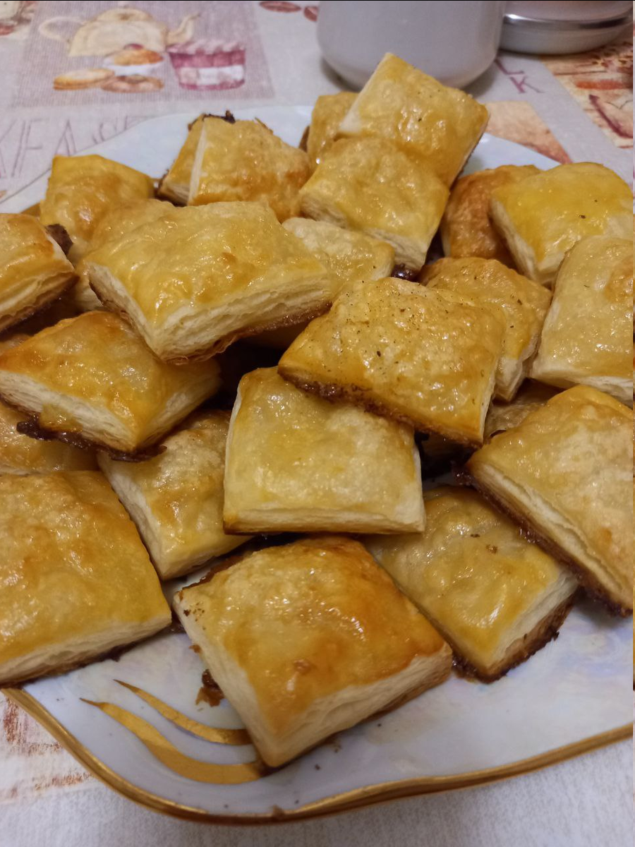 Этот рецепт отличается простотой благодаря нескольким ключевым аспектам: - Минимальное количество ингредиентов делает процесс приготовления быстрым и доступным даже начинающим кулинарам. - Простота действий: всего несколько шагов — раскатывание теста, нарезка, посыпка сахаром и выпекание. - Нет необходимости готовить сложное тесто самостоятельно, достаточно готового слоеного продукта. - Краткое время готовки позволяет быстро получить свежую выпечку. ▌ Что понадобится? - Готовые пластинки слоёного теста весом около 250 граммов. - Щепотка ванильного сахара (примерно две столовые ложки). - Немного растительного масла для смазки формы. ▌ Как сделать? 1. Раскатываем заранее размороженное тесто тонко, режем на квадраты произвольного размера. 2. Противень застилаем бумагой либо промазываем маслом. Выкладываем наши кусочки теста, оставляем пространство между ними. 3. Поверх каждого квадратика добавляем капельку масла и щедро присыпаем сахаром с ароматом ванили. 4. Отправляем форму в горячую д