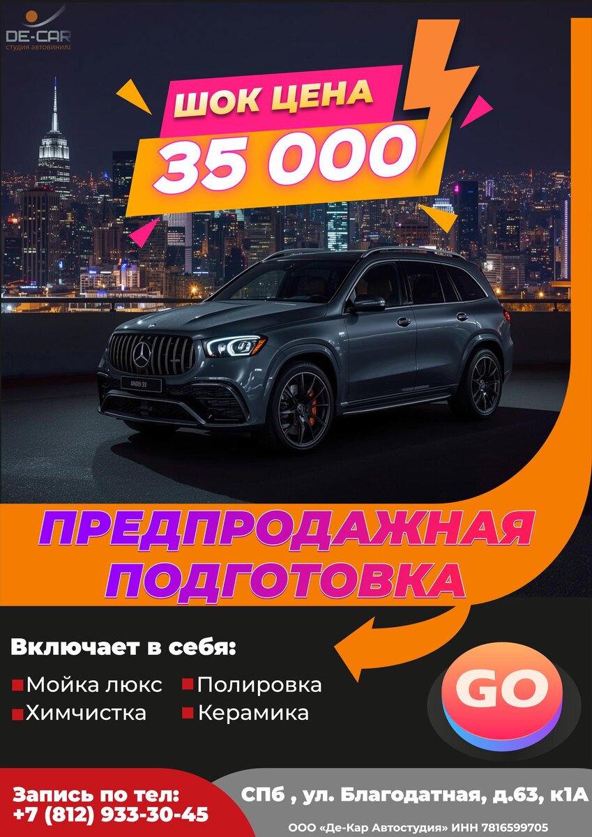 🔥 Хочешь продать авто быстрее и дороже? Сделай предпродажную подготовку! Мы подготовим ваш автомобиль так, что он уйдёт с первых просмотров — дороже, чем вы предполагали 💸 💥 В услугу «Предпродажная подготовка» включено всё, что нужно, чтобы впечатлить покупателя: ✅ Люкс-мойка — убираем грязь даже из самых скрытых уголков ✅ Полировка кузова — глянец, как у новой ✅ Химчистка салона — чисто, свежо и без следов прежней жизни ✅ Слой керамики — чтобы авто сияло, как с автосалона! 🚀 Результат: максимум просмотров, меньше торга, быстрая продажа! 📲 Пиши в сообщения или звони +7 (812) 933-30-45 | +7 (921) 866-23-69 | Telegram | WhatsApp — забронируй место по ШОК ЦЕНЕ. Мест мало. Кто первый — тот и продаст быстрее! Защита вашего авто – наша работа! Подпишись 👉 https://dzen.ru/id/68263eecaac2666b159caf34 #decar #detailing #шокцена #предпродажнаяподготовка
