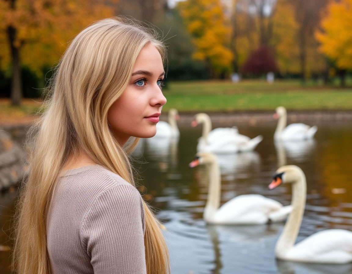 В парке у меня есть любимое место — озеро с лебедями, утками и черепахами. Я снова пришла сюда и села на свою любимую скамейку рядом с ивой. Люди кормили птиц, и те доверчиво брали еду прямо с рук. Я залюбовалась этой картиной.