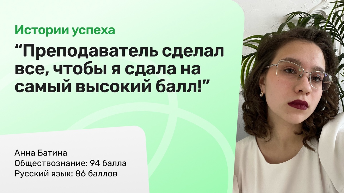 Еще одна история успеха, которой мы рады поделиться! Анна Батина - олимпиадница, высокобалльница и красавица. Выпускница делится интересным методом распределения дел, чтобы всё успевать. Анна, довольны ли вы своими результатами? Да, конечно. Мне надо было сдать оба предмета (обществознание и русский язык) на 75+, чтобы подтвердить мои олимпиадные результаты. Вы регулярно участвуете в олимпиадах? По экономике да, с 9 класса. А по русскому языку не могу назвать себя олимпиадницей. Просто пришла и «взяла» олимпиаду, так бывает. Говорят, везет тому, кто к этому готов. Возможно. Но без удачи точно не обошлось. Вы были у нас на церемонии награждения? Какие впечатления? Интересно. Формат интерактивный, не сухой. Только немного затянуто получилось. Расскажите о ваших преподавателях в ЕГЭбурге. Я ходила на подготовку по русскому языку и обществознанию. Впечатления самые позитивные!