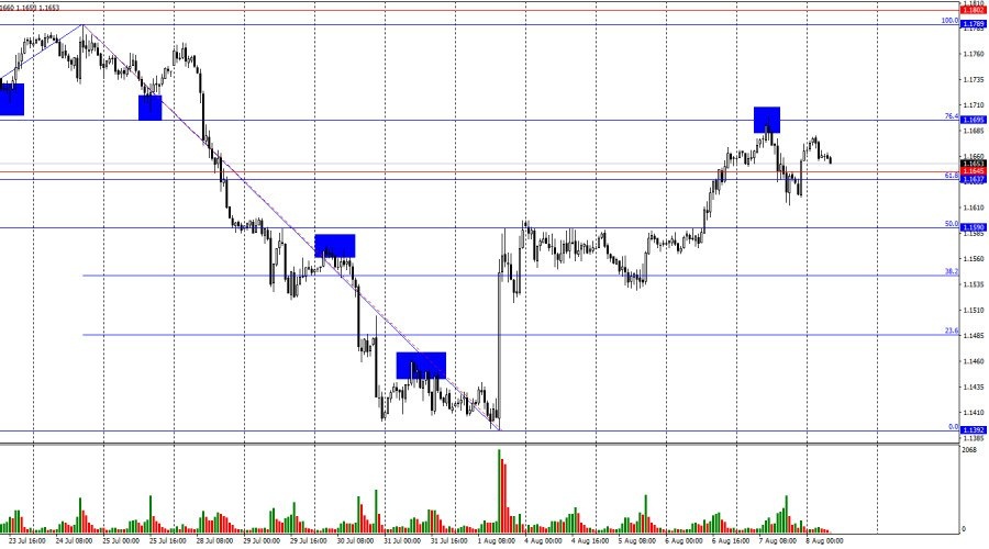 https://basechop.ru/wordpress/?p=53183 Добрый день, уважаемые трейдеры! Пара EUR/USD в четверг выполнила отбой от уровня коррекции 76,4% – 1,1695, разворот в пользу американской валюты и падение ниже зоны поддержки 1,1637–1,1645. Сегодня падение может быть продолжено в направлении уровня Фибо 50,0% – 1,1590. Отбой курса пары от зоны поддержки 1,1637–1,1645 сработает в пользу европейской валюты и возобновления роста в направлении уровня 1,1695 и зоны сопротивления 1,1789–1,1802. Ситуация с волнами на часовом графике остается простой и понятной. Последняя завершенная волна вверх пробила пик предыдущей волны, а последняя волна вниз пробила предыдущий лоу. Таким образом, в данное время тренд можно считать «медвежьим», но в последнее время он слишком часто меняется из-за информационного фона. Дональд Трамп сумел подписать несколько выгодных сделок, что придало сил медведям, как и заявления Джерома Пауэлла после очередного заседания ФРС. Однако последние данные по рынку труда и изменившиеся