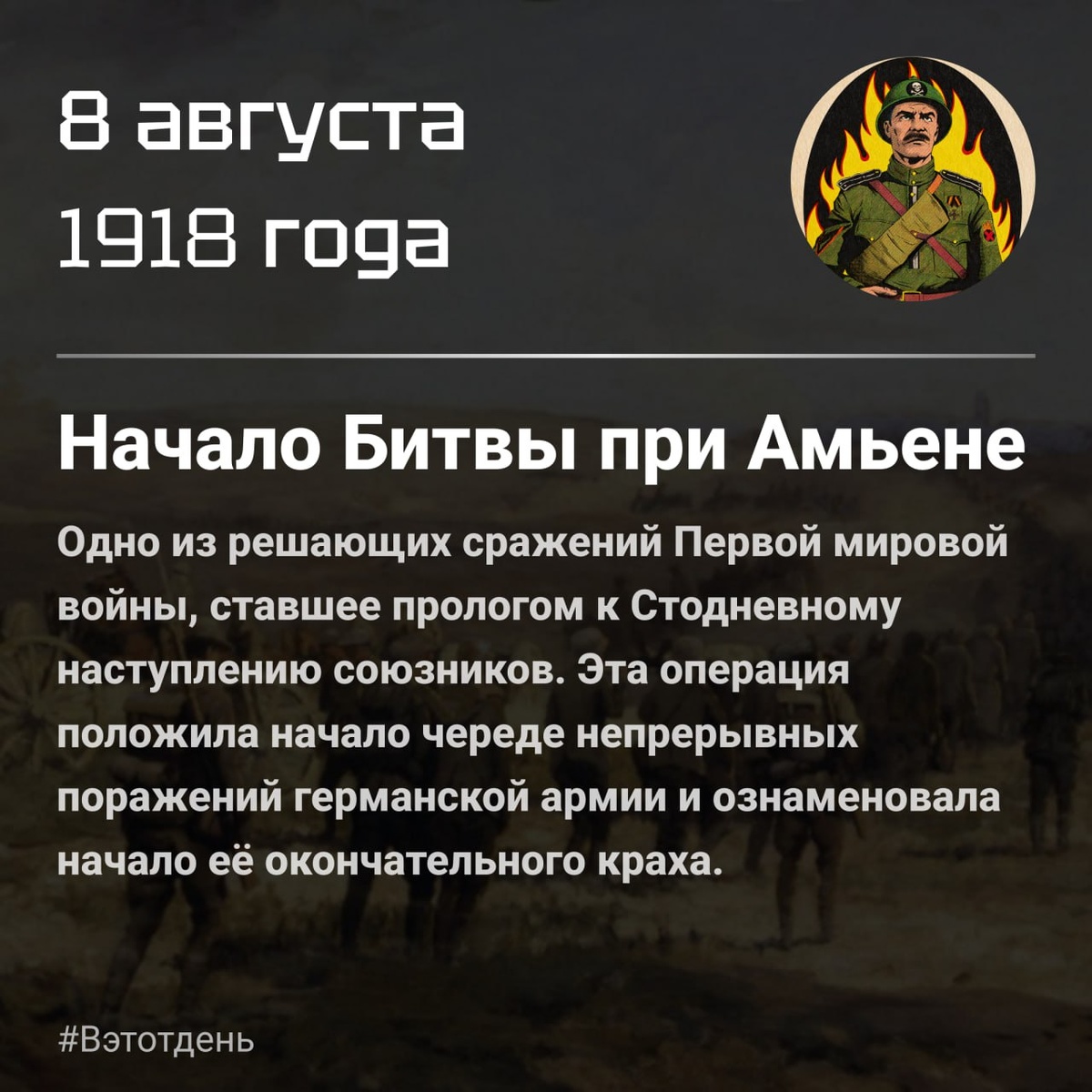 У нас на канале есть очень много качественных фотографий этой битвы, чтобы не дублировать контент вы, а контента очень много, сегодня мы опубликуем только кинохронику этого дня. Остальной контент вы сможете найти вбив в поиск канала битва при Амьене 👈