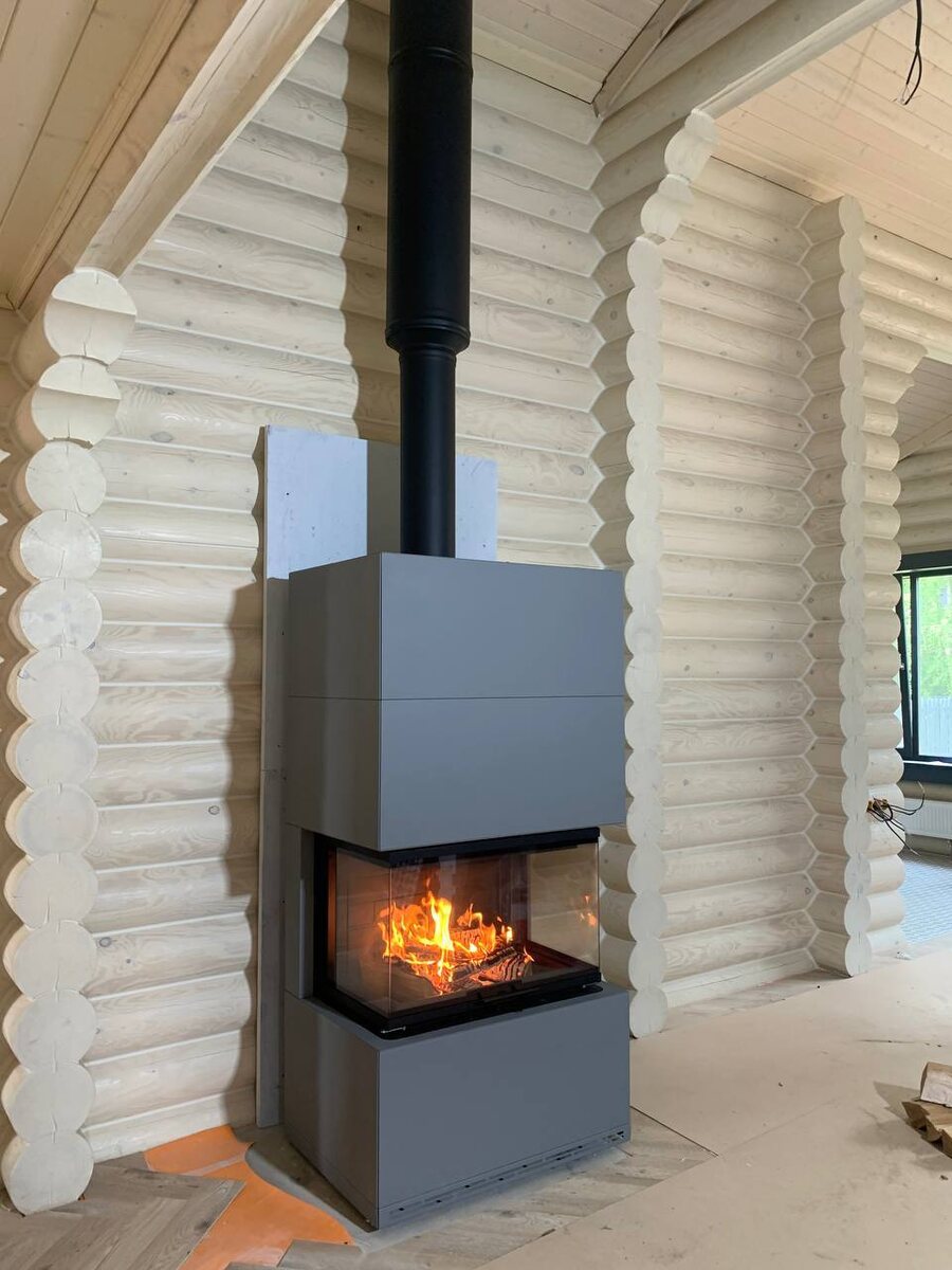 Установили камин Родос 800 в сером цвете от российского производителя Экокамин. Горит правда красиво ! В интерьер вписался гармонично.