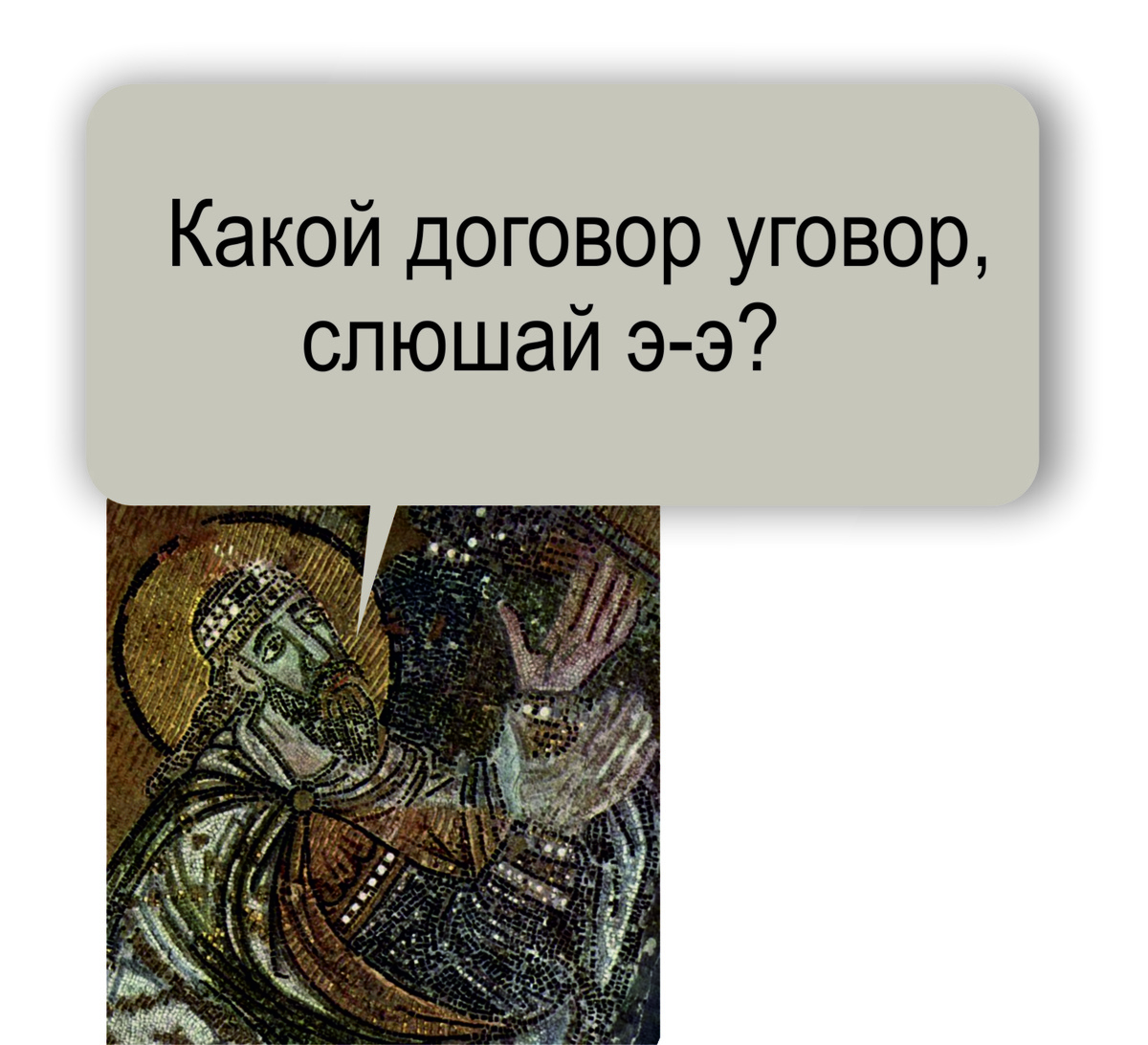 И, действительно, договорчик есть. И греки не отпираются. Но он, между сахаром и плюшками для торгующих, содержит статьи для "победителей" прямо обидные. То низзя, это не брать, придут нехорошие болгары, с ними воюйте, если нашли что, сюда отдайте и т.д. Одно "велимъ князю рускому" чего стоит.