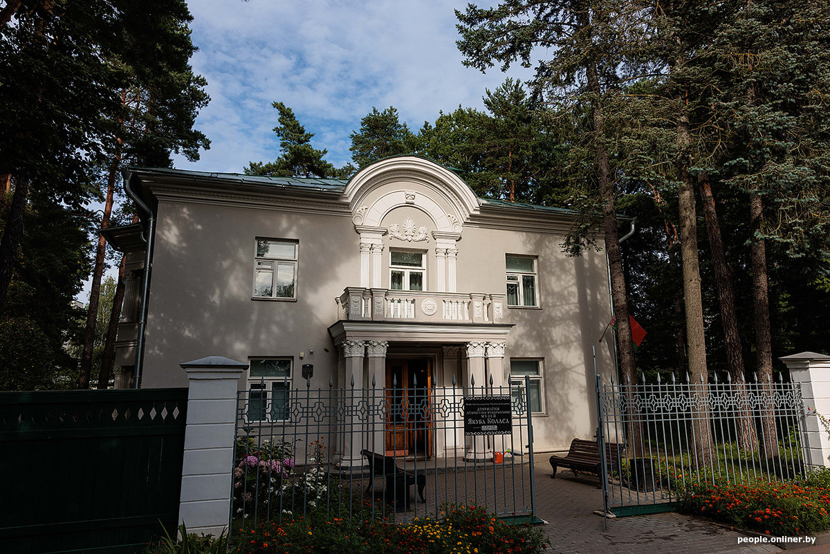— Якуб Колас умер в этом доме, в своем рабочем кабинете, 13 августа 1956 года. Он находится здесь же, на втором этаже. По воспоминаниям потомков, Азгур приходил сюда вместе со своим помощником. Скорее всего, всю процедуру проводили в доме, так как гроб стоял здесь же, на мраморном столике в гостиной.