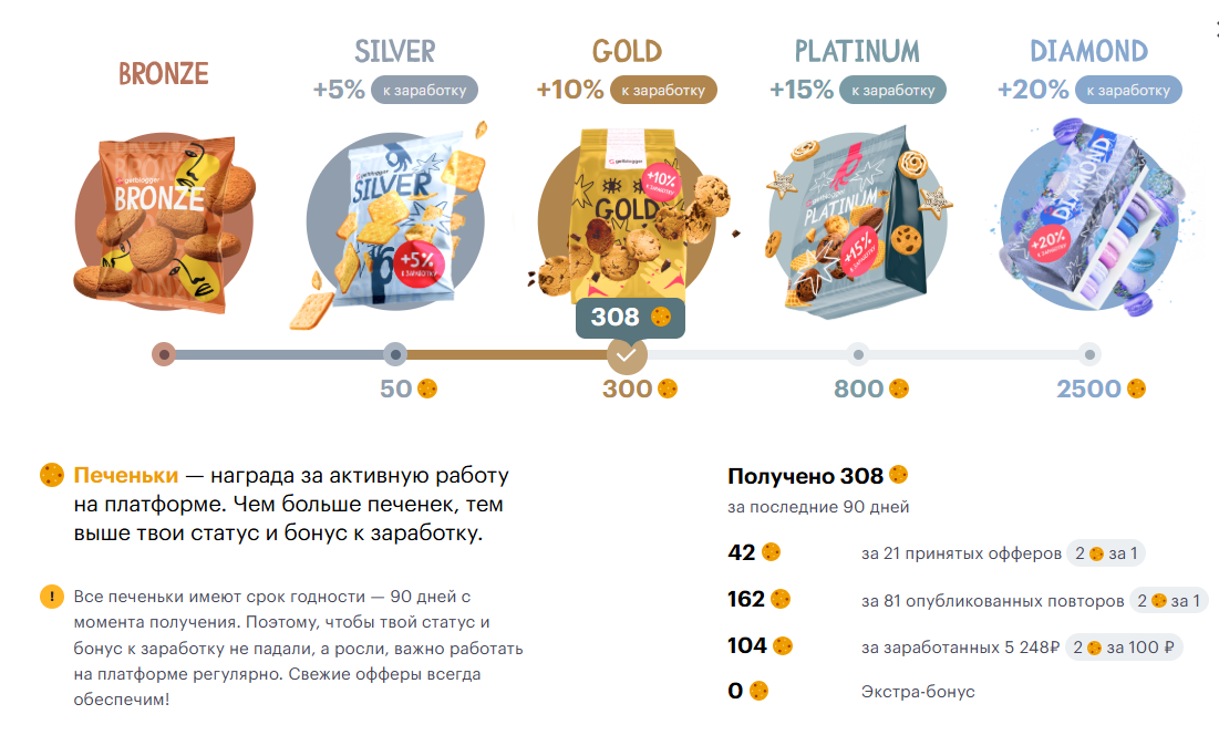 Ну всё, теперь я вам тут не просто так, у меня теперь статус - Голд, вот так! Достигла я своего, набрала печенек в Гетблоггере и достигла совершенства почти.)) Кстати, эти печеньки набрать было не так и сложно, я тут поняла одну хитрость, всё выложила в статье в Премиум, поделилась своими лайфаками. Повышение рейтинга увеличивает доход, ко всем моим выплатам будет прибавляться ещё 10 %, что очень даже хорошо. Ссылка и промокод с бонусными 300 рублями в этой статье: На данную платформу зашла буквально недавно и по своей реферальной ссылке, чтобы проверить всю эту систему. Заказала дебетовую карту, в обслуживании она бесплатная, выполнила условия получения (нужно было потратить 1 000 рублей) и теперь вот жду. Реферальная ссылка с бонусом на данную платформу в статье: Баллы пока не пришли, так как указано было ждать 30 дней, должно быть 2 000 баллов. Ждём, ладно. А пока время зря не теряю, оказывается на Банки.ру можно баллы зарабатывать, вы знали? Я нет, надо было давно сюда зайти, я лю