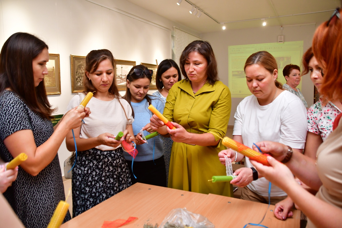 Увлекательный мастер-класс по изготовлению свечей из вощины показала директор музея Алия Мирсаяпова.
