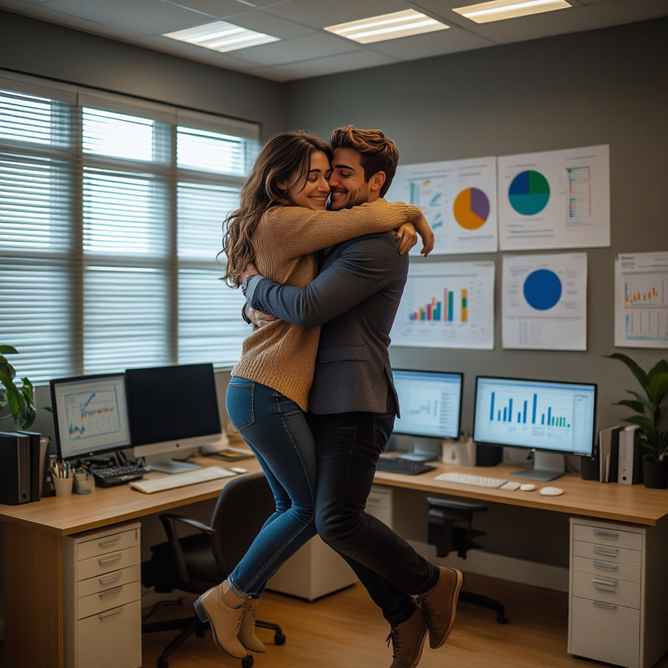 Постепенно замедляя движение, они начали опускаться на пол, не разрывая объятий. Их ноги коснулись пола, но руки всё ещё крепко держали друг друга, словно боясь потерять это волшебное мгновение.