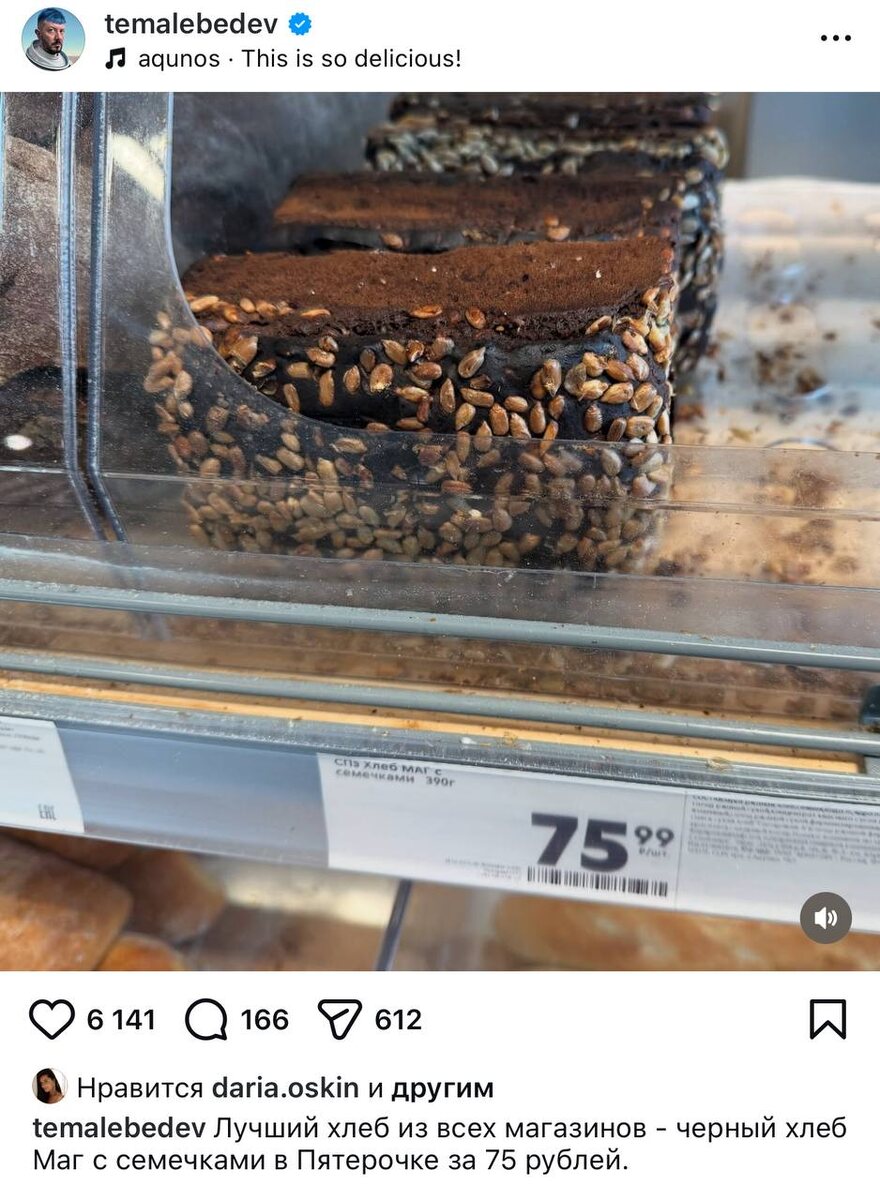 #доброеутро Я все страдала, как перестать есть хлеб)) особенно один, конкретный. Похоже, Артемий Лебедев решил вопрос за меня, спасибо! Теперь этот хлеб точно будут раскупать раньше, чем я дойду до Пятерочки. Фото из запрещенной сети. А как с хлебом у вас? #яникогданепохудеюилинет?