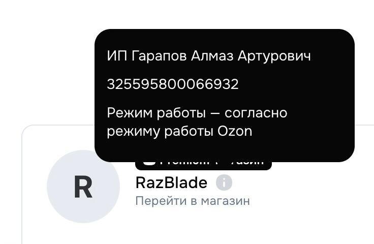 Схема с фейковыми кассетами Gillette на Ozon: подписчик нашёл связку продавцов Один из подписчиков прислал разбор, который он готовил как жалобу в поддержку Ozon. Ниже краткая выжимка и факты, которые могут заинтересовать других селлеров и покупателей. ### Суть проблемы В каталоге Ozon обнаружено сразу несколько продавцов, торгующих поддельными кассетами Gillette с маркировкой "Оригинал". Продавцы работают под разными брендами, но: - Зарегистрированы в одном и том же налоговом органе: Межрайонная ИФНС № 17 по Пермскому краю - Зарегистрированы в период с мая по июнь 2025 года - Продают один и тот же товар - Получают статус "Премиум-магазин", несмотря на подозрительное качество ### ИП и магазины 1. ИП Илькаев Булат Рамилевич ОГРНИП 325595800062033 от 07.05.2025 Магазин: Twenty 2. ИП Яговкин Дмитрий Сергеевич ОГРНИП 325595800065446 от 16.05.2025 Магазин: Щетины Нет 3. ИП Гарапов Алмаз Артурович ОГРНИП 325595800066932 от 20.05.2025 Магазины: - RazBlade - RazzorGar - Alblade 4. ИП