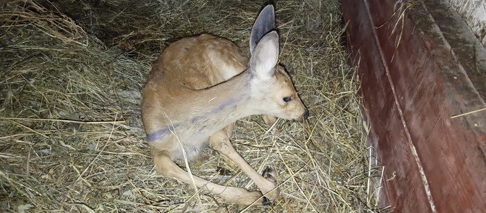 Салют мои хорошие. Давеча пошёл загонять мартышек до хаты, и краем уха услышал нездоровую движуху на огороде. Пригляделся и увидел, как моя борзая зажимает у забора зайца. Вот те на подумал я, и уже мысленно побежал разжигать печь под казаном, но подойдя поближе увидел, что это вовсе не заяц. Оказалось что каким то образом на территорию пробрался косулёнок. Отогнав от него сутулую, хотел было выписать его за забор, но заметил, что задняя ляжка у него изрядно в крови. Пятнистый орал шо есть мочи, и брыкался аки танцор под мефедроном. Прикинув пипку к носу, сообразил, что отпускать его в белый свет не вариант. Сгрёб подмышку и потащил до сарая, дабы детально осмотреть, и по возможности оказать ПМП. Пока нёс, попутно отпинываясь от псины, этот балбес копытом умудрился распороть мне ляжку, так что помощь пришлось оказывать в первую очередь мне. Запер его в родильне, обработал раны себе и ему. Притащил веток, сенца и травки. Через соску напоил водой. У оленя шок, у меня минус штаны. Что буд