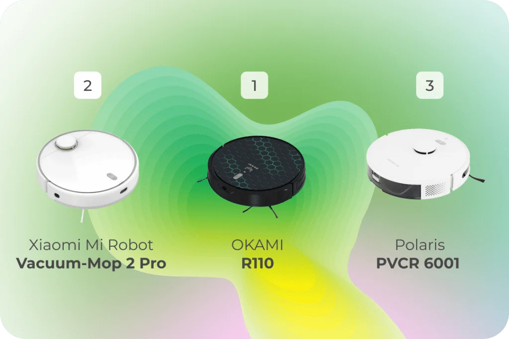Okami R110 — инновационный робот-пылесос, лидар которого встроен в корпус. Он так же точно строит 3D-карту помещения, как и его коллеги с «башенкой», и при этом его высота всего 7,6 см. По этому параметру он однозначный лидер в рейтинге: остальные модели высотой от 8 до 10 см.