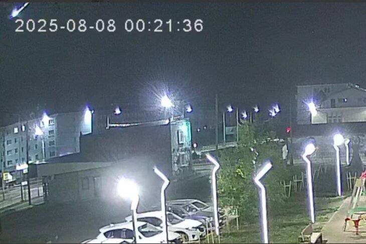 Ночью 8 августа в небе над Иркутской областью пролетел яркий метеор. Его зафиксировала камера видеонаблюдения в Свирске в 00:21 — на видео болид заметен в левом верхнем углу кадра.