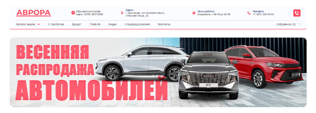 Аврора — это автосалон в Краснодаре. Открылся на месте АЦ Максимум, дилера из нашего черного списка. Вероятнее всего, салон остался прежним, просто изменилось название, т.к. карточка компании на Я.Картах осталась прежней. Больше интересного ищите в нашем обзоре. В автосалоне на Откосной улице 2Б в снт Автомагистраль можно купить новый или подержанный автомобиль. Салон позиционируется как официальный дилер марок BESTUNE и SWM, однако это является ложью. Новые автомобили в АЦ Аврора продаются с большими скидками. Пример ценового предложения на момент написания статьи: Также по подозрительно низким ценам продаются и подержанные автомобили: При этом на сайте нет: На основании этого мы решили провести проверку. У автоцентра Аврора три владельца: 2. ООО "ФОРМУЛА" (ИНН 7736367000). Компания была зарегистрирована, относительно, недавно — в феврале 2025 года в Москве. По юридическому адресу зарегистрировано еще 131 организация. Уставной капитал — 20 000 рублей. Велика вероятность, что юридическ