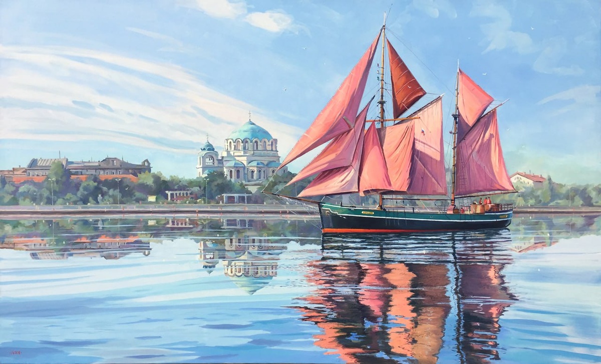 "Алые паруса близ Евпатории" масло холст . Художник Иван Кудрявцев.
