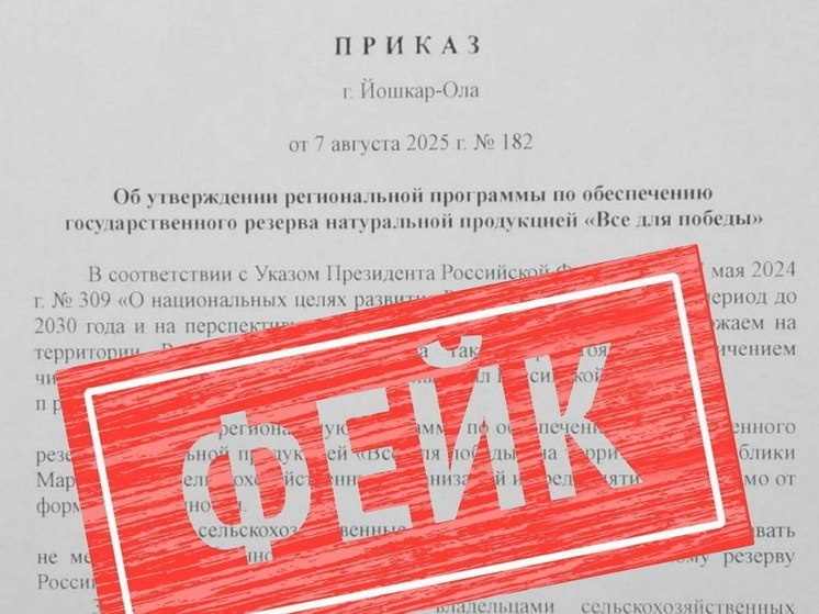 🔥 Новый недостоверный документ – на этот раз якобы от минсельхоза Марий Эл – распространяется в соцсетях. В тексте приказа за подписью министра сельского хозяйства и продовольствия Республики Марий Эл Андрея Кондратенко говорится об утверждении региональной программы по обеспечению государственного резерва натуральной продукцией «Все для победы». Согласно программе агропредприятия республики должны добровольно сдавать часть собранного урожая и нести ответственность в случае сокрытия его объемов. Такого приказа не существует, сообщили в ведомстве.