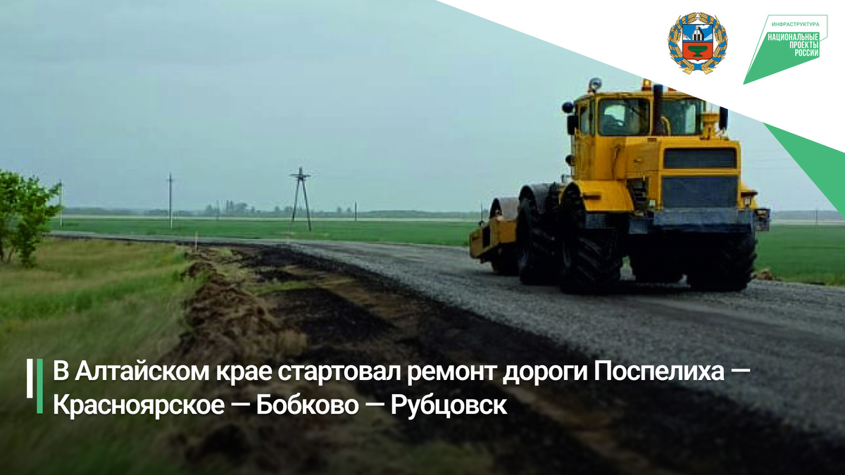 В рамках национального проекта «Инфраструктура для жизни» специалисты Южного ДСУ приступили к ремонту дороги регионального значения Поспелиха — Красноярское — Бобково — Рубцовск — К87. Работы ведутся на выезде из Поспелихи.