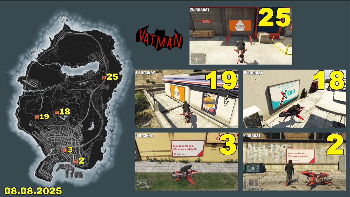 Расположение плакатов в GTA Online на сегодня (8 Августа) ☀