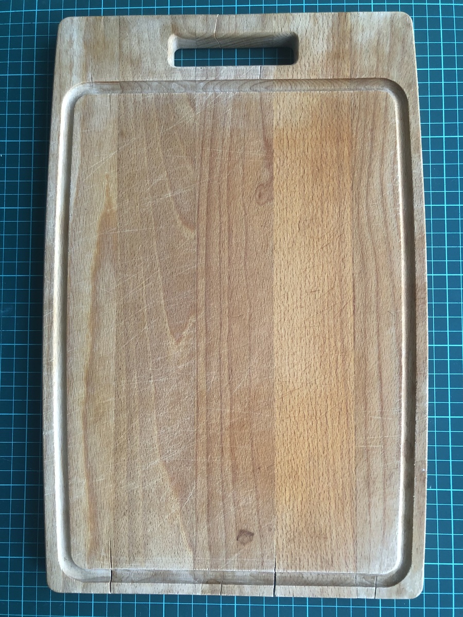 Даже и не помню почему не выкинула эту треснувшую деревянную разделочную доску при недавнем расхламлении, а вот сейчас поняла, что правильно и сделала. Это потому, что доска хоть и треснувшая, но крепкая и толстая. А мне нужна гладильная доска таких вот средних размеров, так как она у меня осталась у дочери. Очень удобный размерчик для доски: Для изготовления доски взяла ткань для половой тряпки и старую фланель: Размер доски: обхват по ширине 56 см, длина 40. Подкладочную ткань для простоты буду называть ватином, тем более, что ватин действительно можно использовать. Я брала этот ватин в 2 слоя, но можно было ограничиться и одним. В сложенном вдвое состоянии ширина 28, длина 42 с учетом припусков на бока и на то, что я его пристегала к фланели, чтобы при глажке не сдвигался: Размер фланели 60х40, где 40 - высота. Дело в том, что из фланели с ватином будем шить мешок, который затем одеваем на доску: Доску вставляем в мешок так, чтобы простеганная часть была сверху на гладкой стороне д