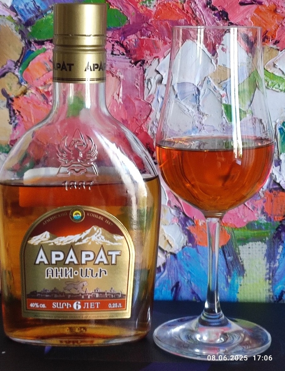 Продолжаем знакомиться с армянскими коньяками. Очередной обзор от моего друга Александра Соболева (текст автора). Герой сегодняшнего обзора - Армянский коньяк Арарат Ани 6. Ни в коем случае мои отзывы не претендуют на безапелляционную объективность. Это только мое личное мнение о конкретном напитке, а оценка выражает только мое отношение к нему. Всем привет! И снова Питер, и снова раритет! Признаюсь, я сначала опешил, увидя вроде бы привычный Ани, но не семилетку, а 6-ти! А уж когда контру прочёл... Минимальный возраст 4 года, максимальный 20 лет! Такого дива я ещё не наблюдал, разве что в Двине-Ереване-Армении... Что за чудо? Год розлива 2019-й, русская контра без состава... Интересно, аж жуть! Цвет янтарный, однозначно колерный. Маслянистость приличная. Аромат изначально жахнул спиртом по самое не балуй. Однако, мощно. Спирт точно на 4 года. Но через спирт пробиваются неплохие коньячные нотки. Жду. Спирт успокаивается, пошёл чуть-чуть виноград и мощно... орехи! Вот те на! Где армянин