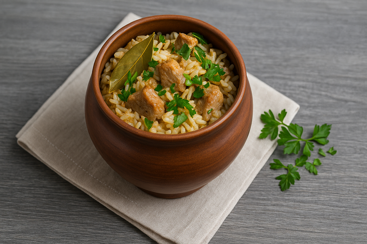 Есть блюда, которые словно созданы для того, чтобы согревать душу. Рис с мясом, томящийся в глиняных горшочках, — как раз из этой категории. Здесь нет спешки, каждая крупинка пропитывается ароматом мяса, овощей и специй, а сам процесс приготовления настолько прост, что не требует от вас долгого стояния у плиты. Всё, что нужно, — подготовить ингредиенты, сложить их в горшочки и дать духовке сотворить чудо.Такое блюдо удобно готовить для семейного ужина или когда ждёте гостей: порционная подача в горшочках смотрится эффектно, а вкус получается насыщенным и гармоничным.