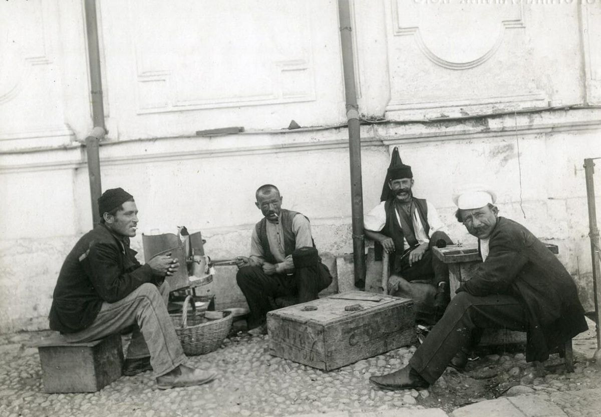 Распивание кофе на улице. Таврическая губ., г. Симферополь, 1907 г. Автор фото: Дубровский М.И. Из фондов: Российский этнографический музей (РЭМ) Может быть, кто то сможет узнать место на фото? #Симферополь #этнография #Дубровский #общепит