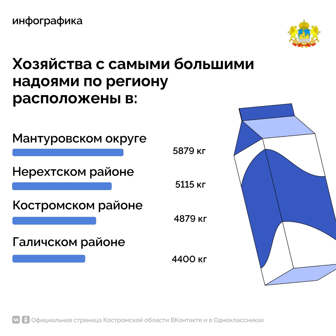 За полгода в сельскохозяйственных организациях региона надоили на 1,1% молока больше, чем в аналогичном периоде 2024. Средний удой от одной коровы — 4264 килограмма. Это выше уровня прошлого года на 12,7%. Показатели выше среднеобластных отмечены в хозяйствах Нерехтского, Костромского, Галичского муниципальных районов и Мантуровского муниципального округа. #КостромскаяОбласть #АПК