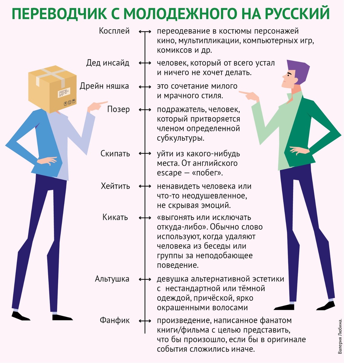 На днях Радий Хабиров встретился с лидерами неформальных молодежных сообществ – от анимешников и кей-поперовдо готиков, косплееров и двачеров (это которые с пакетами на головах). Глава потом признался, что эта встреча была одной из самых необычных за все время его работы. «Эти ребята выглядят по-другому, у них особый, необычный взгляд на мир. Но все они – наши дети. Очень талантливые, умные, чистые. И с невероятной внутренней свободой. Есть среди них музыканты, художники, те, кто шьет костюмы. Обсудили поддержку, которую можем им оказать, фестивали, которые можем провести», – написал глава. Чтобы диалог получился максимально открытым и понятным, для Главы республики даже подготовили специальный современный молодёжный разговорник! Мы заглянули в него и хотим поделиться самыми интересными выражениями и терминами.
