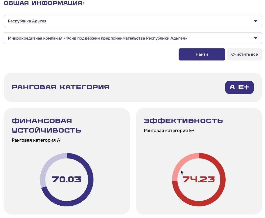 Отметим, что в Адыгее действует микрокредитная компания «Фонд поддержки предпринимательства Республики Адыгея», которая получила высшие оценки рейтинга (АЕ+) — и по уровню эффективности, и по финансовой устойчивости.