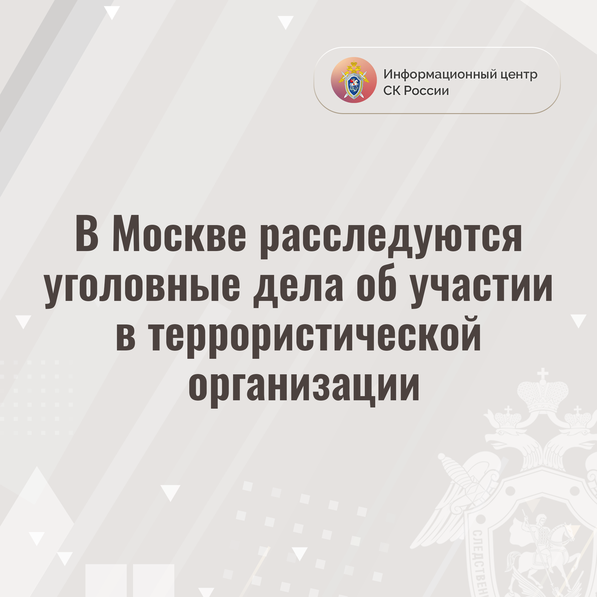 Следственными органами СК России по г. Москве возбуждены и расследуются уголовные дела в отношении двух иностранных граждан 1986 и 1987 годов рождения. Они обвиняются в совершении преступлений, предусмотренных ч. 1 ст. 205.5 УК РФ (организация деятельности террористической организации и участие в деятельности такой организации).