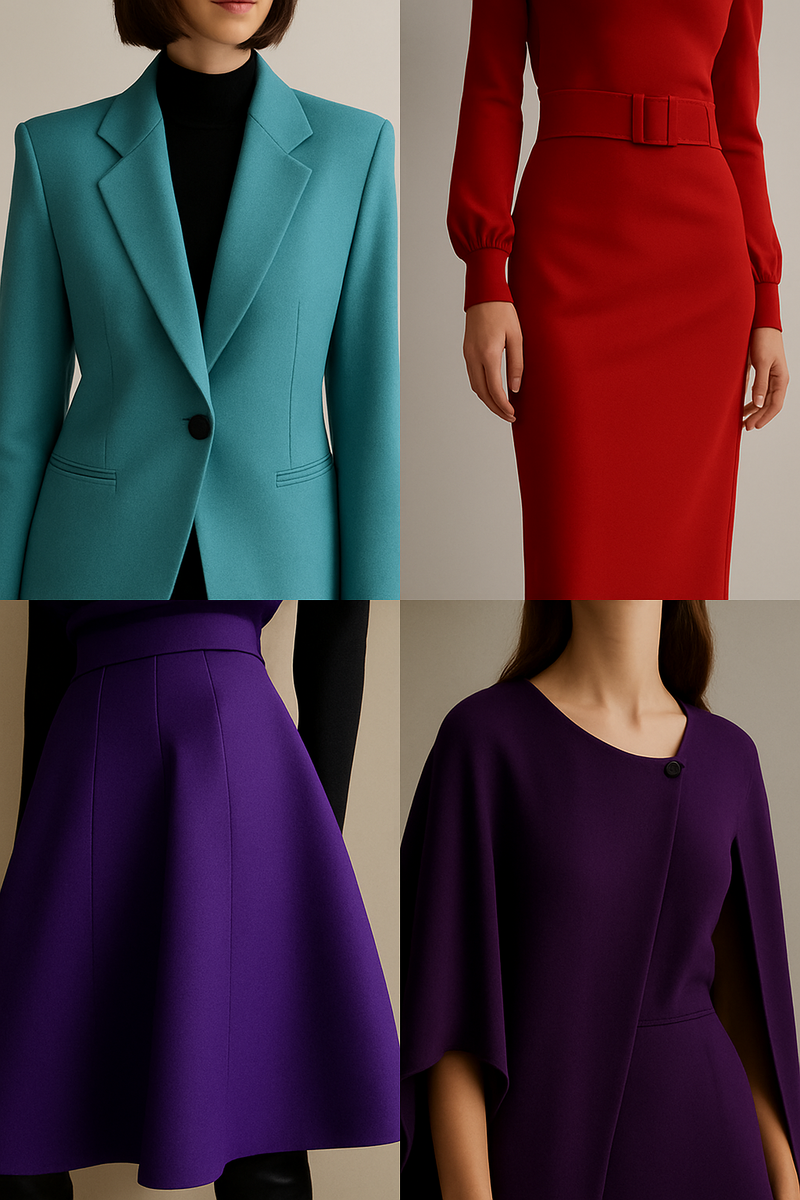 Давайте честно: выдохлись мы все от этих «универсальных баз», капсульных гардеробов в цвете овсяного печенья и «надежных бежевых». Иногда хочется надеть не «что подойдёт ко всему», а что подойдёт мне. Да так, чтобы было красиво, ярко, живо — но без превращения в новогоднюю витрину. И вот тут на сцену выходит он — максимализм для минималистов. Что это такое? Это когда у вас один жакет — но какой! Он цвета аквамарина, у него чёткий силуэт и идеальная посадка. Или когда юбка сшита так, что тень от неё красива. Это про вещи, которые говорят, но не кричат. Про стиль, который цепляет, но не утомляет. Цвета, которые мы выбираем этой осенью Вдохновляемся модными домами, но адаптируем под жизнь, не под подиум. В фаворитах: • Aquamarine — не морская волна, не мята, а благородный полупрозрачный сине-зелёный. Идеален для пальто или платья-халата. • Scarlet — не просто красный, а тот самый алый, как в книгах. Прекрасен в деталях: подкладка, пояс, сумка, контрастная строчка. • Royal purple — роско
