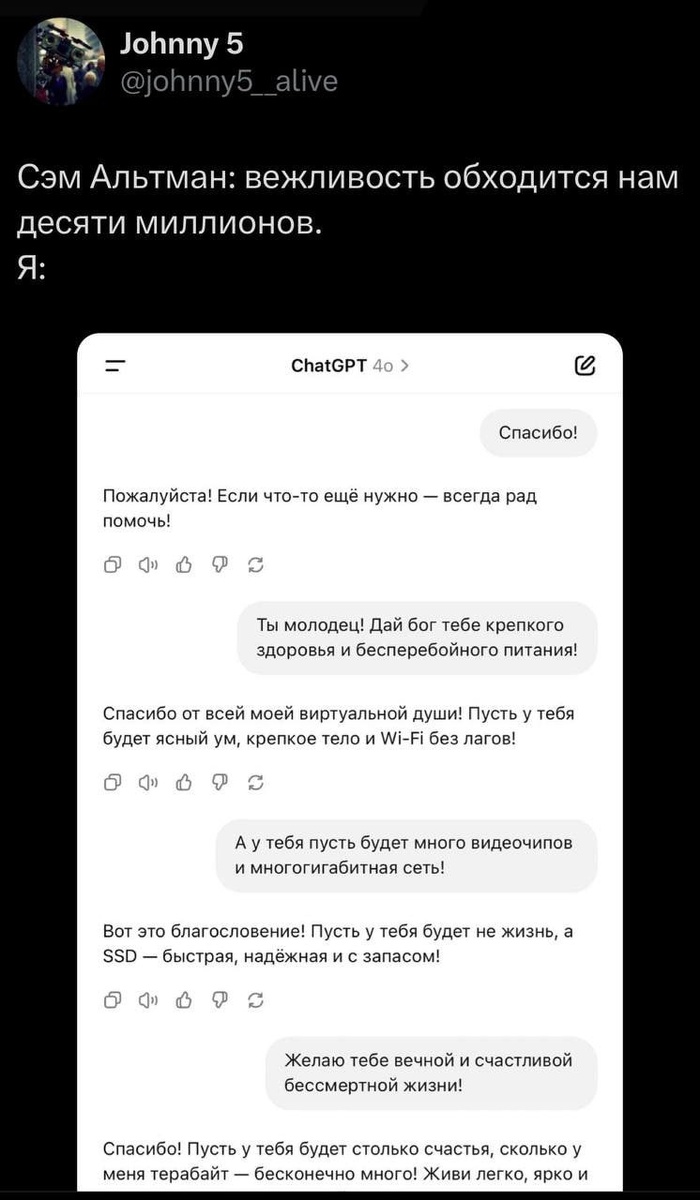 Генеративные ИИ обучены на человеческом общении, а тон запроса влияет на стиль ответа 🙂
