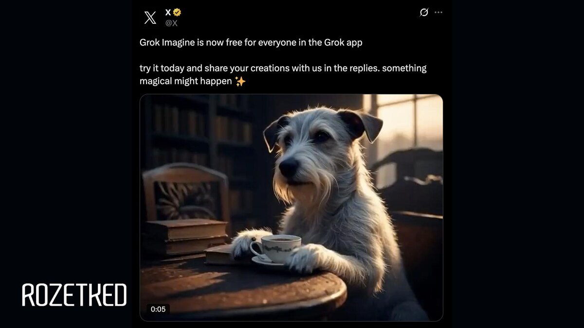 Grok Imagine решили выпустить для всех Официальный аккаунт 𝕏 в 𝕏 объявил о выпуске Grok Imagine для всех — генератор изображений и видео от xAI доступен в приложении Grok для iOS и Android. Изначально Grok Imagine был доступен только платным подписчикам SuperGrok. Релиз состоялся в начале августа, и нейросеть быстро стала известна своим отсутствием цензуры — пользователи смогли без проблем создавать NSFW-контент, например, с Тейлор Свифт. 💼 Rozetked | Подписаться