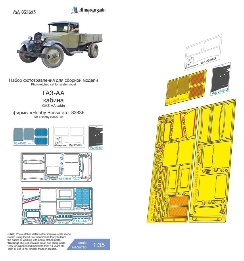 "Микродизайн" из Севастополя выпустила фототравление для деталировки кабины модели ГАЗ-АА в масштабе 1/35 от Hobby Boss: ГАЗ-АА кабина (каталожный номер МД 035623)