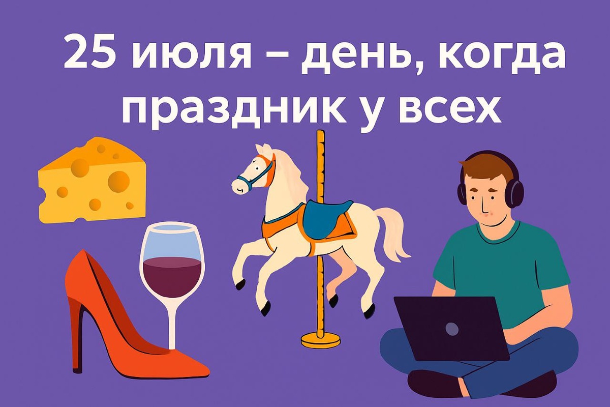 "Вино, сыр, туфли и немного кодинга" 25 июля — апдейт по праздникам: 👮♂️ День следака — не шутим, а то протокол. 💻 День сисадмина — обнимите своего айтишника (или хотя бы не ломайте принтер). 🍳 День кулинара — сегодня еда должна быть вкуснее, чем мемы. 👠 День красных туфель — проверка стиля пройдена. 🎠 День карусели — катаемся, пока жизнь не закружит сама. 🍷🧀 Вино + сыр — идеальный комбо-пак. Ставь ❤️, если хотя бы один пункт твой вайб сегодня.